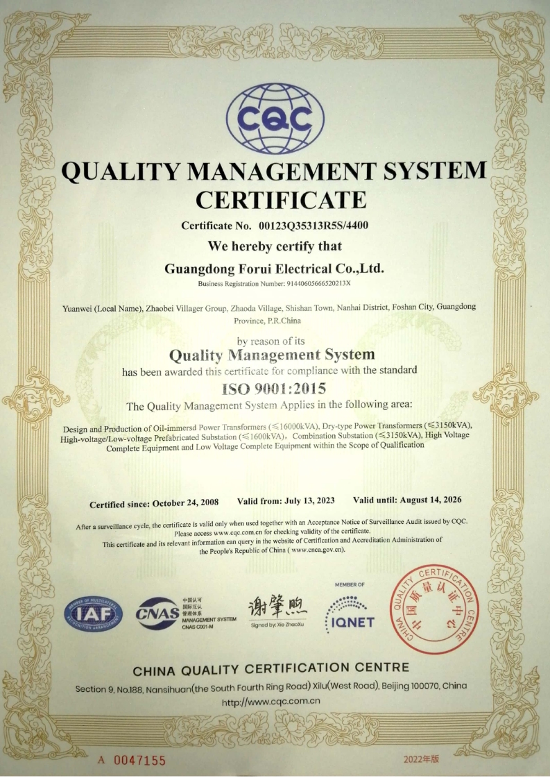 FORUI was founded in 2007. Through continuous experience accumulation and innovation-driven development, the company has grown into a national high-tech enterprise integrating R&D, production, sales and service of power transformers. After years of steady innovation and expansion, FORUI has rolled out a full range of transformer products including dry-type, oil-immersed and special transformers, which are widely recognized and trusted by clients across industries with their stable performance, energy-saving features, reliable quality and comprehensive after-sales service.